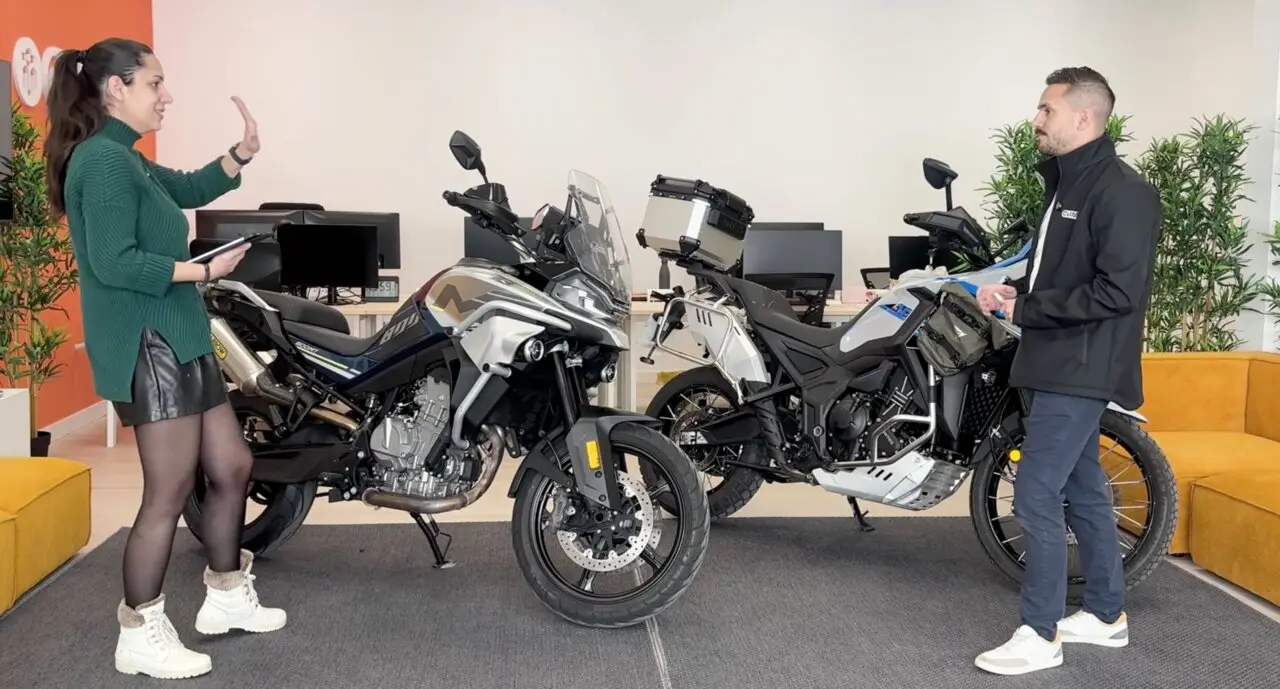 La escena arranca con dos motos delante, “dos bestias”, y una pregunta que suena a lo que piensa mucha gente cuando ve una ficha técnica repleta: “¿Cómo puede ser que salga más barata… si además vienen desde China?”. Y la respuesta, más que una frase, es una explicación de modelo industrial.