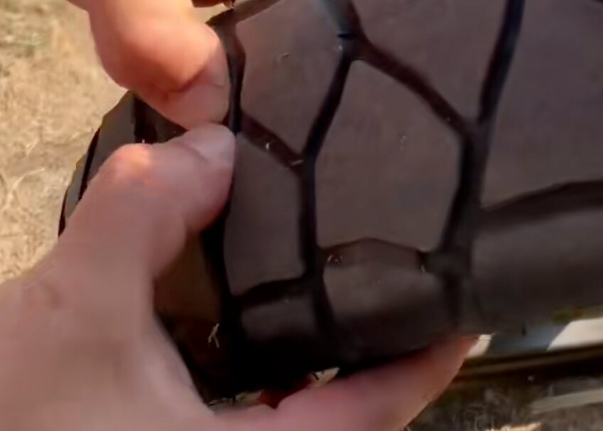 A la basura su neumático Michelin tras hacer un poco de off road con su Triumph: "Se despegó"