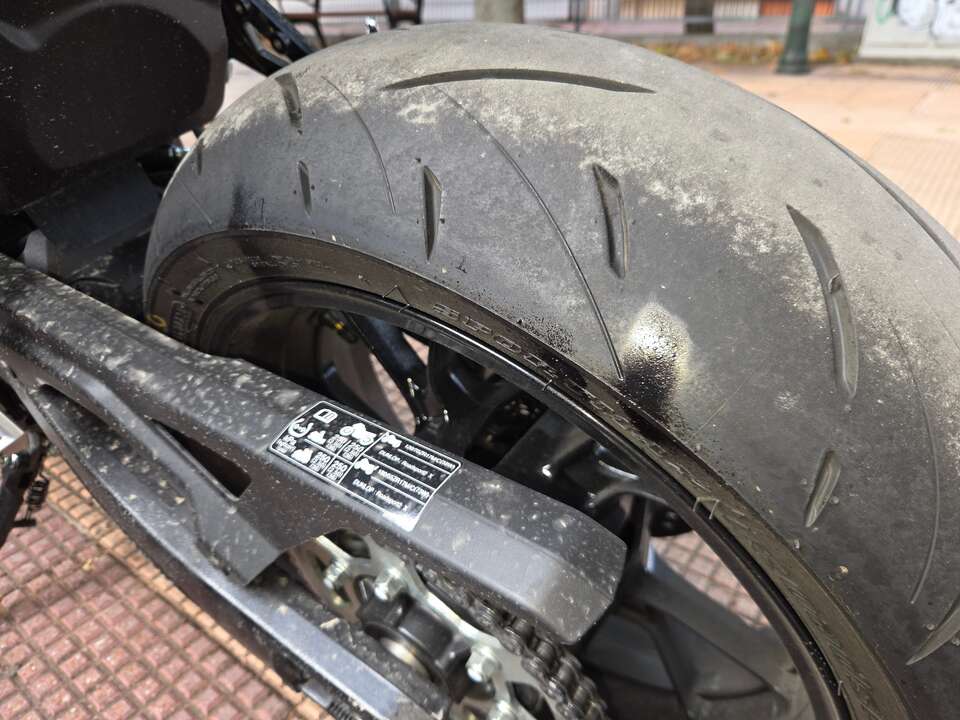 El caso fue más allá cuando revisó el resto de la moto. Según su relato, al engrasar la cadena el taller habría aplicado grasa sobre la banda de rodadura del neumático, algo especialmente peligroso.