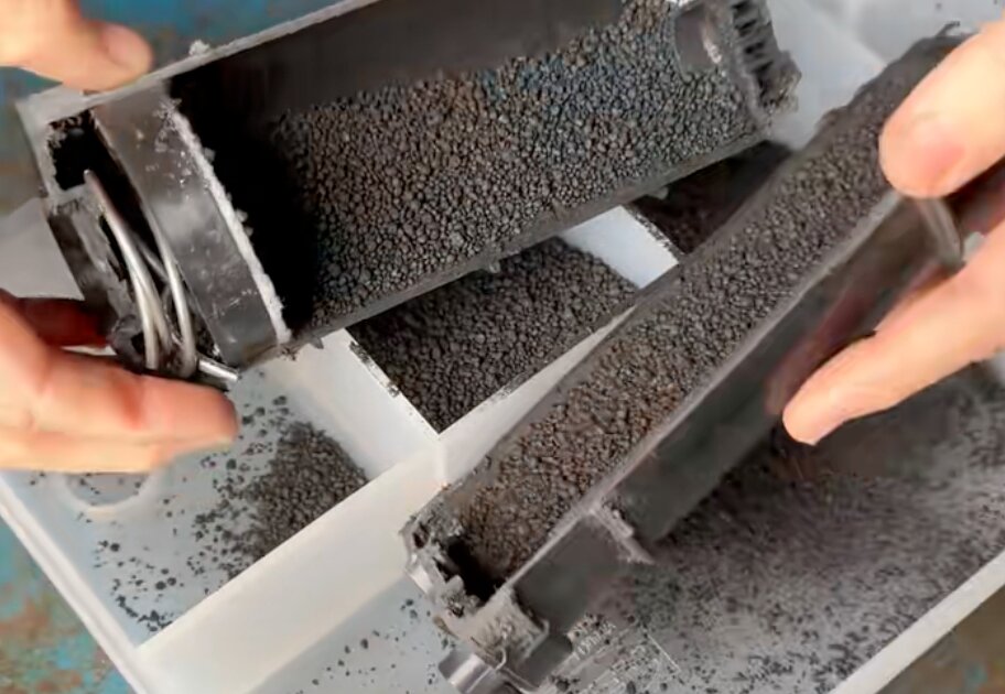 En el interior de este dispositivo hay un material muy similar al que se utiliza en filtros domésticos de purificación de agua o aire, compuesto por pequeños granos de carbón activado.